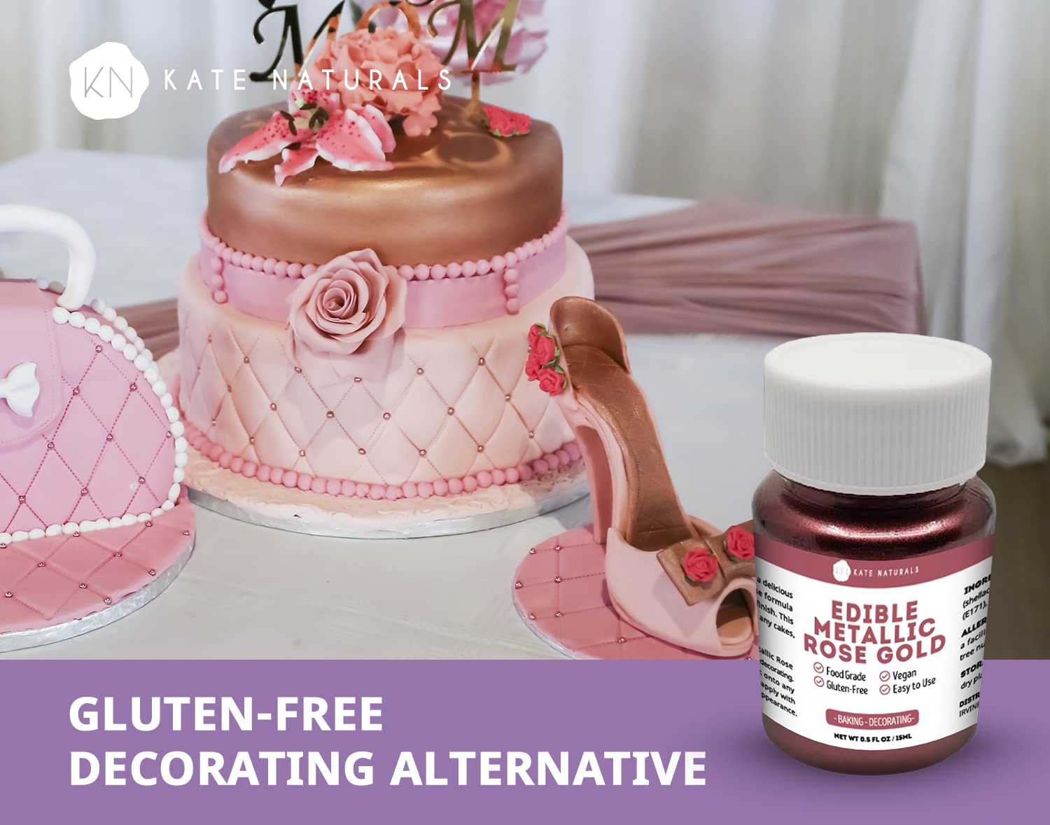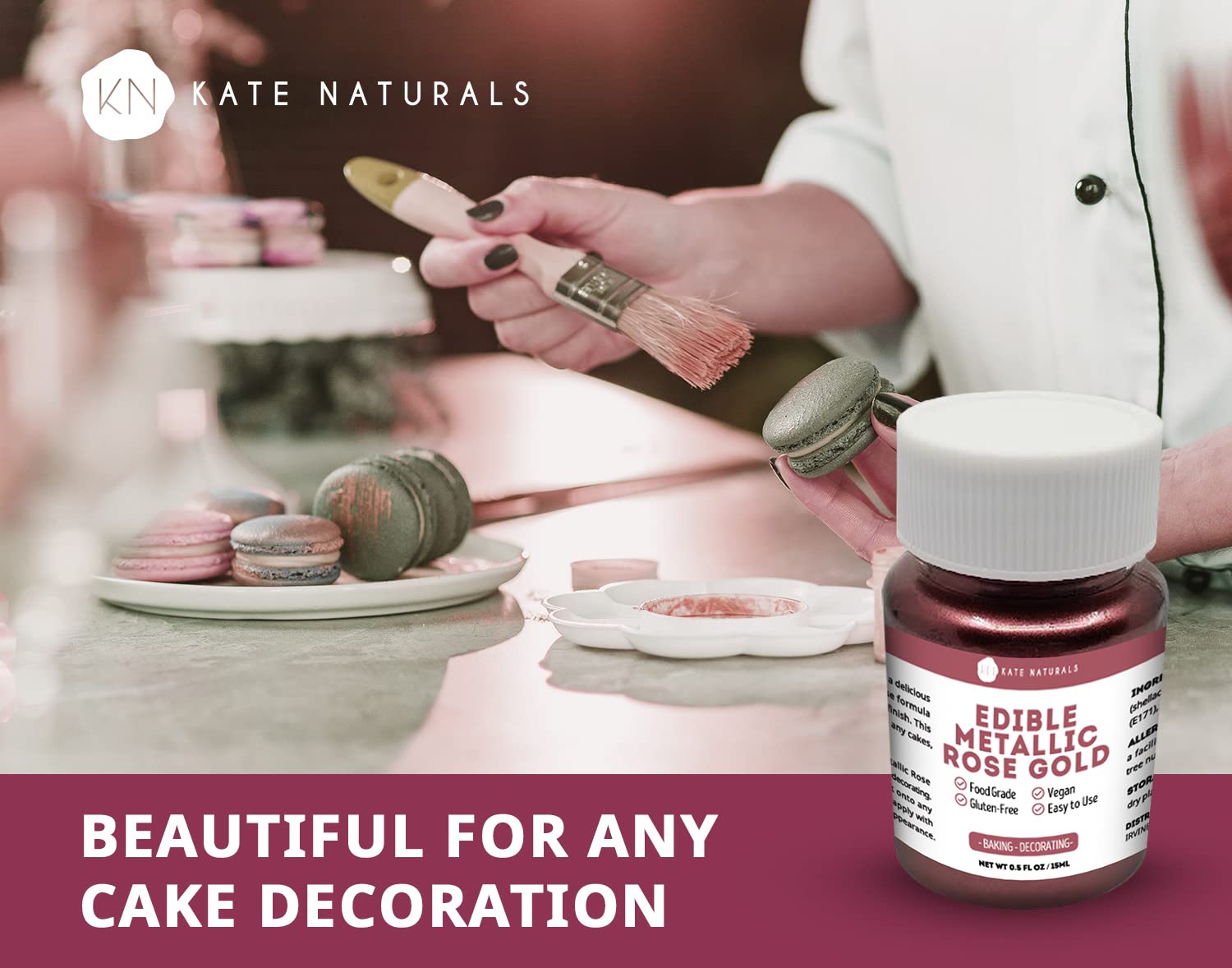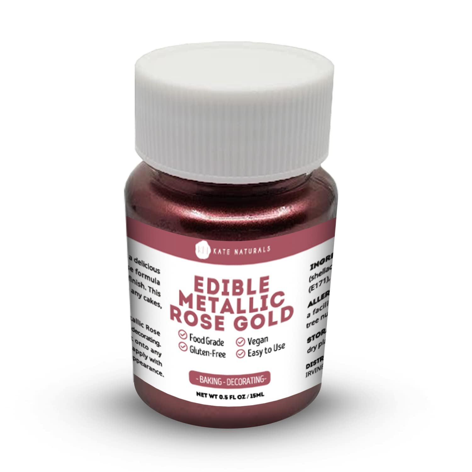 Edible Metallic Rose Gold Dust for Cake Decorating & Cookies (0.5 fl oz) - Kate Naturals