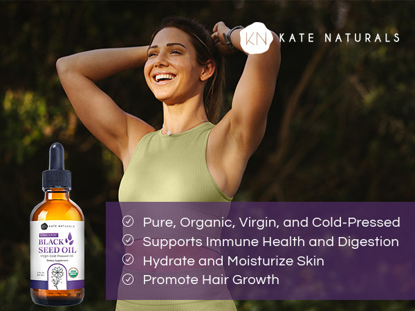 - PURE, ORGANIC, COLD-PRESSED: Kate’s blackseed oil is pure, cold-pressed, and USDA organic; free from additives, ideal for dietary use, skin applications, or as a hair care solution