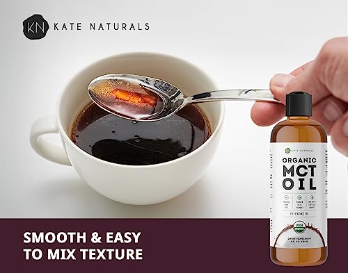 - MCT OIL FOR COFFEE & COFFEE CREAMER: Kate Naturals' Organic MCT Oil blends well with coffee and smoothies because it is colorless, odorless, and has no aftertaste.